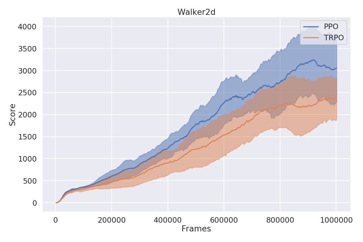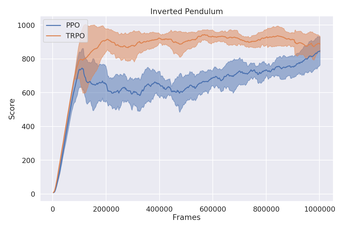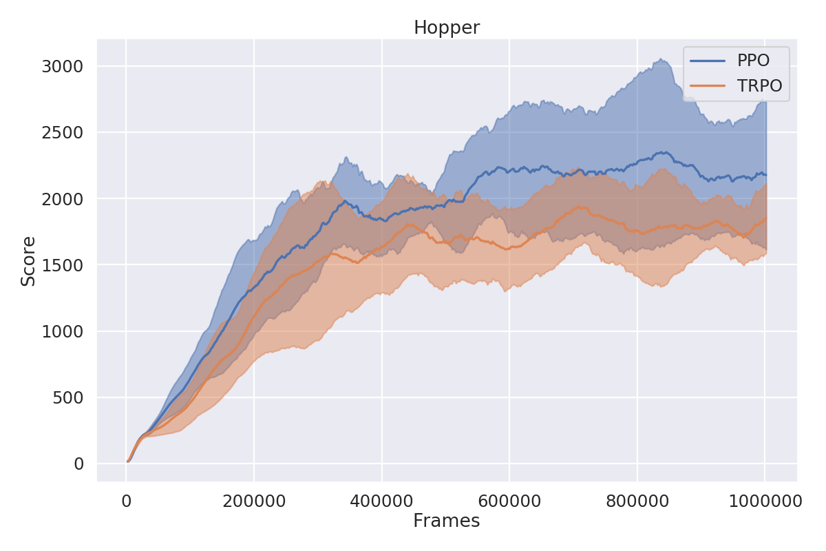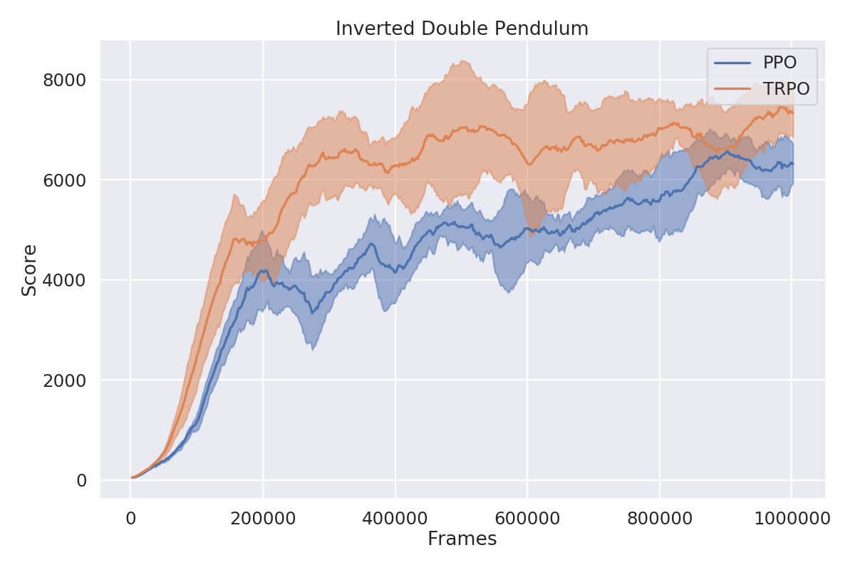 The closest to that what I found were benchmark resutls published by OpenAI for their baseline implementations for various Atari[6] and MuJoCo[7] environments. I've decided to evaluate my models with hyperparameters chosen to be as close as possible to theirs and compare the results.